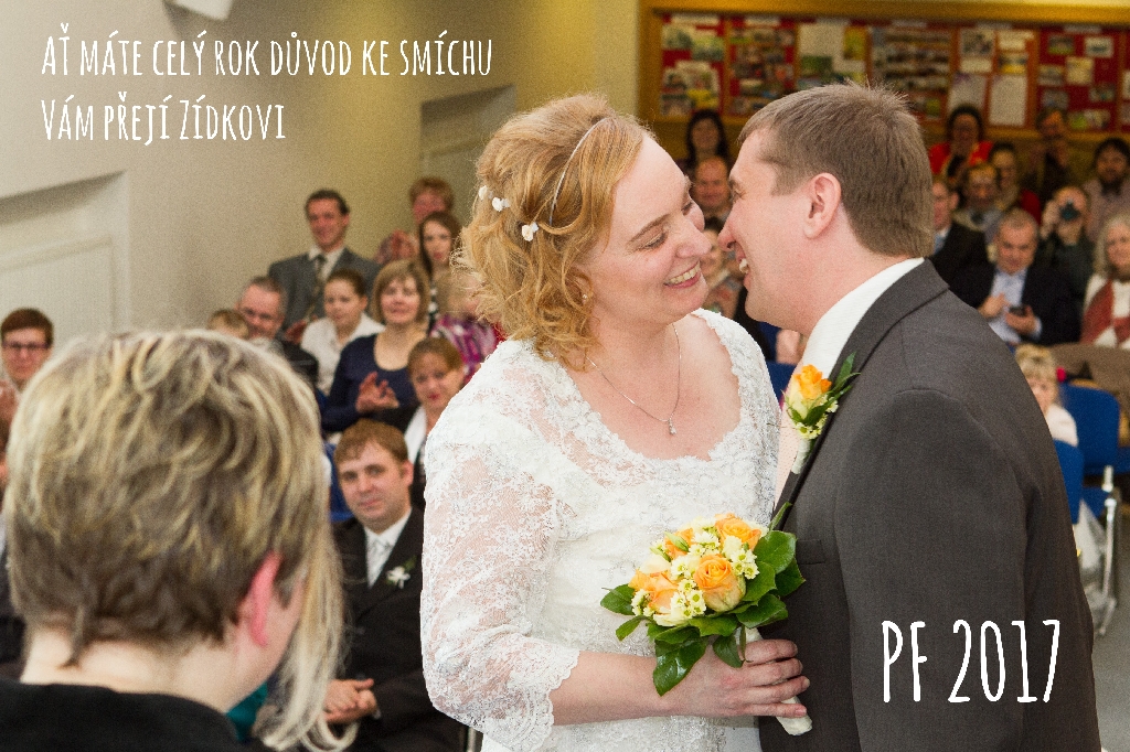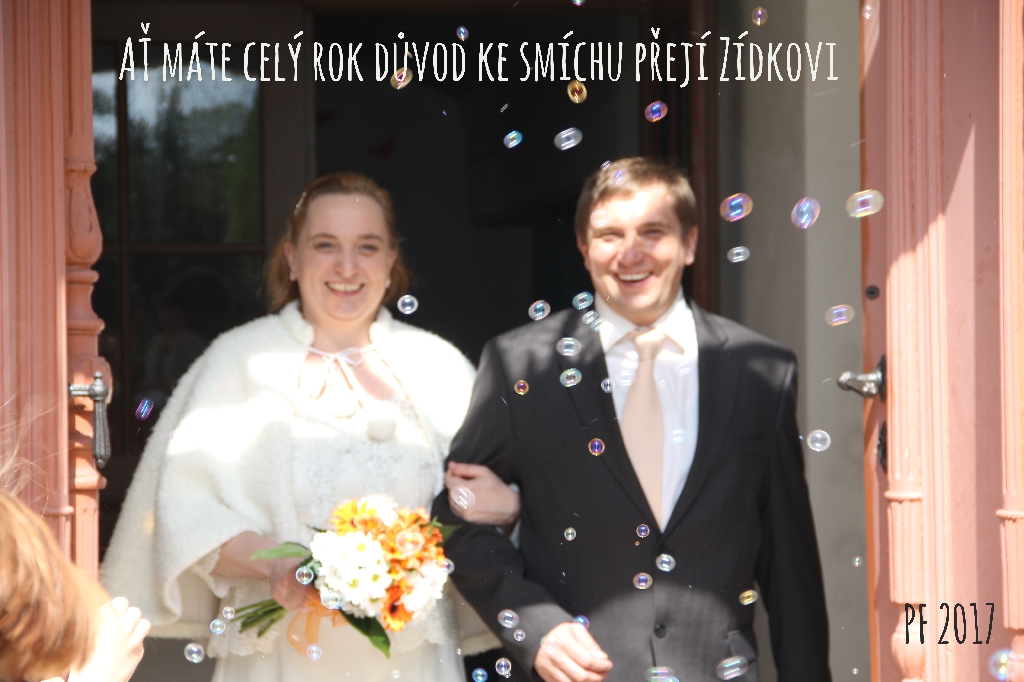 Nejdůležitější změnou bylo, že jsem změnila příjmení. Jelikož já jsem chtěla malou svatbu (mým snem bylo mít svatbu "my dva a svědci") a můj nastávající chtěl opravdu pořádnou veselku, měli jsme nakonec svatby dvě. Tedy svatba jako taková byla jenom jedna - poslední dubnový den se ze slečny Černohorské stala paní Zídková. V modlitebně BJB Brno jsem řekla (dokonce dvakrát!) ANO a od té doby kráčím životem po boku Rosti Zídka. Na obřad mohl přijít kdokoliv, ale samotná oslava proběhla v úzkém rodinném kruhu (i tak nás bylo asi 25). O čtrnáct dnů později jsme měli tzv. posvatební oslavu. Ta se konala na Vysočině - v Sázavském kostelíku byla slavnostní posvatební bohoslužba a poté jsme se přesunuli do tamějšího kulturáku, kde nás slavilo hrubě přes stovku a juchalo se do pozdních ranních hodin. (Já teda odcházela už okolo půlnoci, Rosťa zamykal kulturák asi ve tři...). Pár informací ze svatby je k nalezení na https://svatba-rosta-lucka.webnode.cz